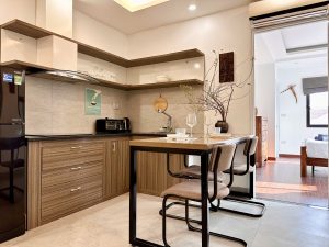 Bếp và phòng khách đầy đủ tiện ích